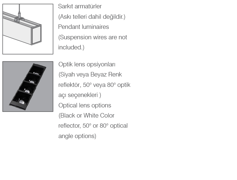 - (100) 1 saat Acil çıkış kiti - (010) DALI - (013) ILD Sensor