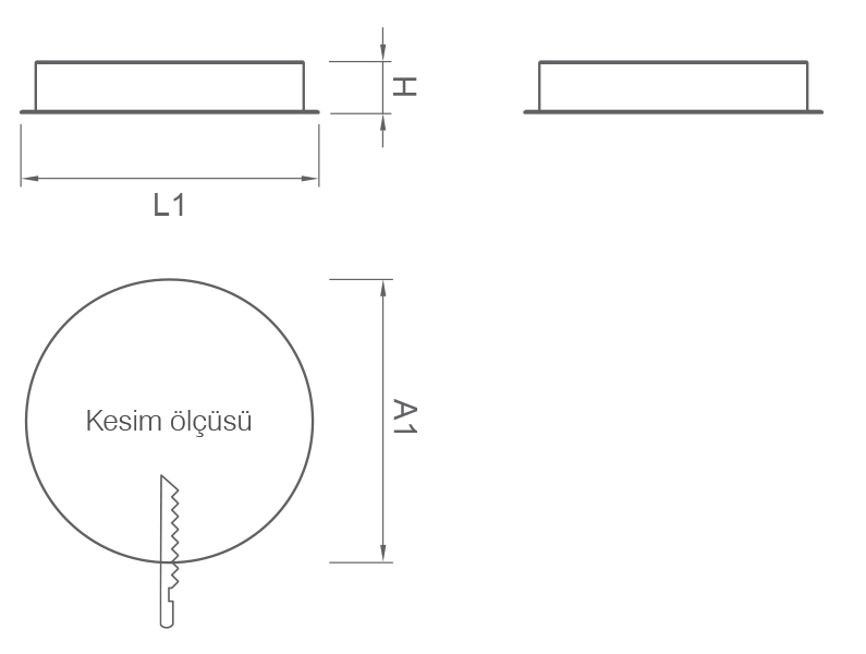 | Güç | Lamba | Çıkış Lümeni | Im/W | Ra | Renk | A1 | A2 | L1 | L2 | H | Kg | Kod |