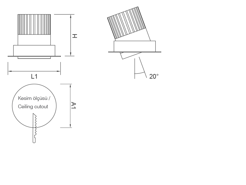 | Güç | Lamba | Çıkış Lümeni | Im/W | Ra | Renk | A1 | A2 | L1 | L2 | H | Kg | Kod |