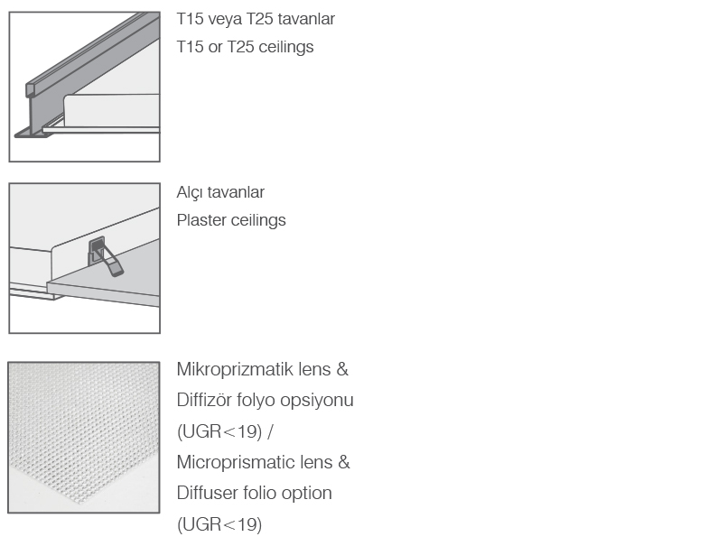 - (100) 1 saat acil çıkış kiti - (300) 3 saat acil çıkış kiti - (010) DALI