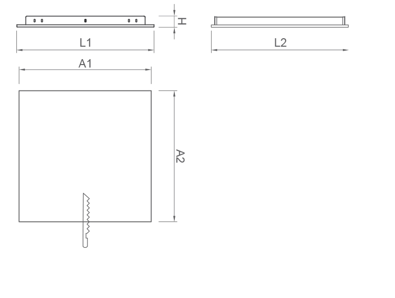 | Güç | Lamba | Çıkış Lümeni | Im/W | Ra | Renk | A1 | A2 | L1 | L2 | H | Kg | Kod |