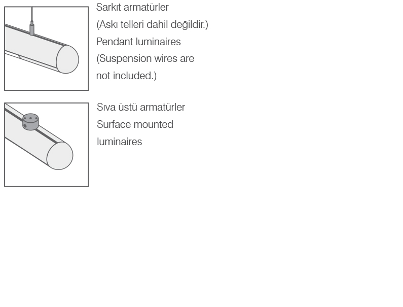 | Güç | Lamba | Çıkış Lümeni | Im/W | Ra | Renk | A1 | A2 | L1 | L2 | H | Kg | Kod |